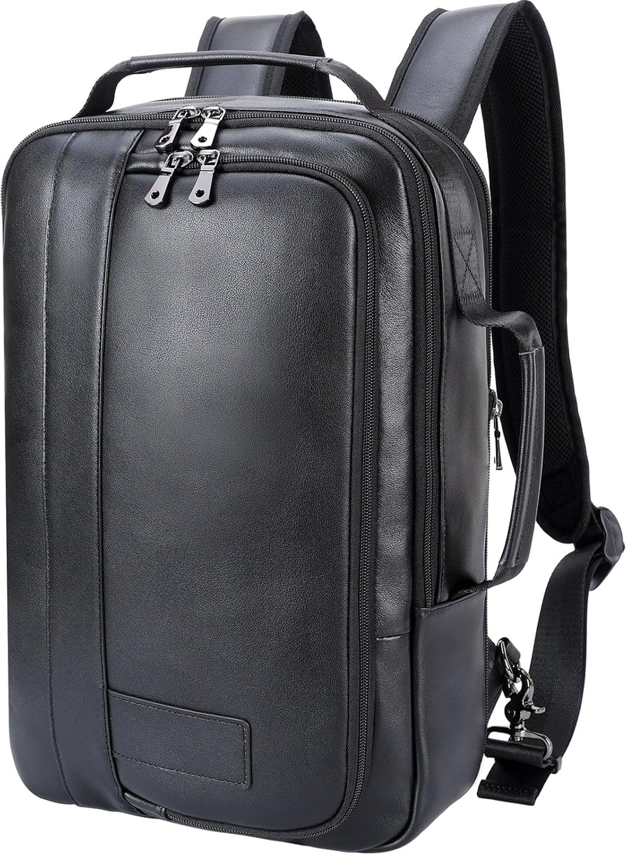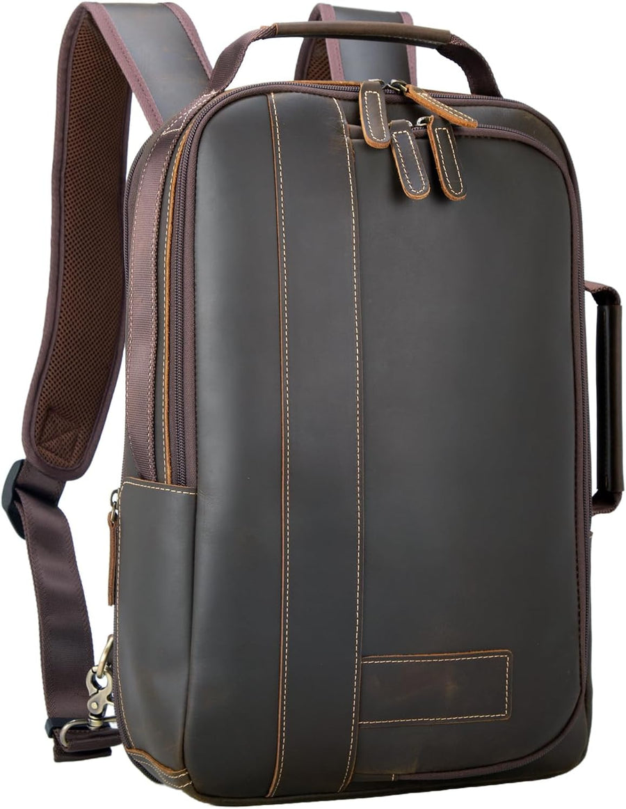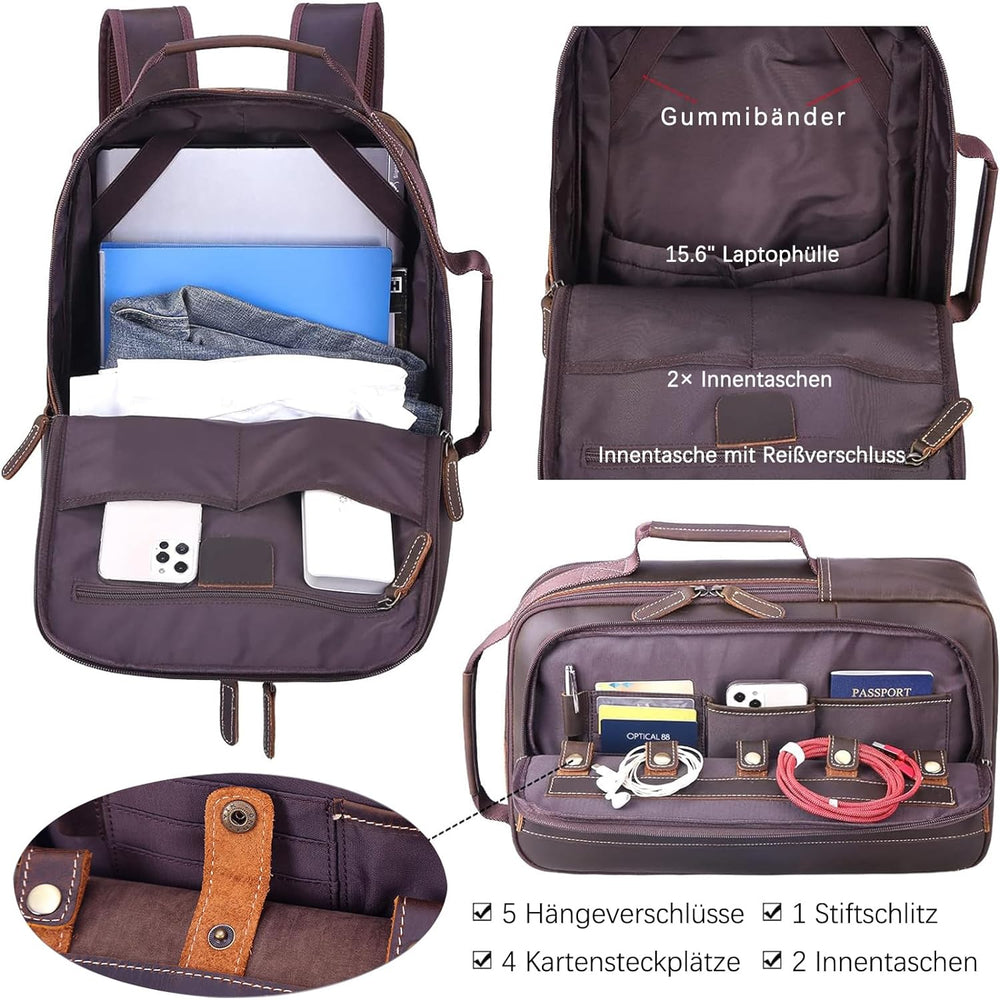 TIDING Herren Rucksack Echtes Leder Gross Kapazität Business Reisetasche für 15,6 Zoll Laptop Tasche