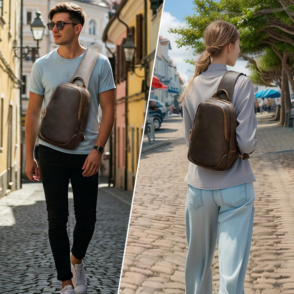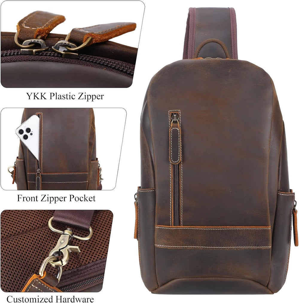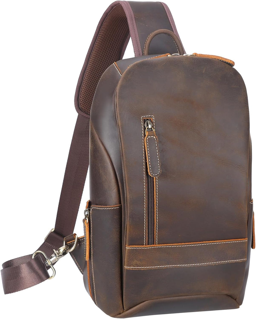 TIDING Sling Rucksuck Leder Schultertasche Umhängetasche Herren Brusttasche mit Anti-Diebstahl Sport