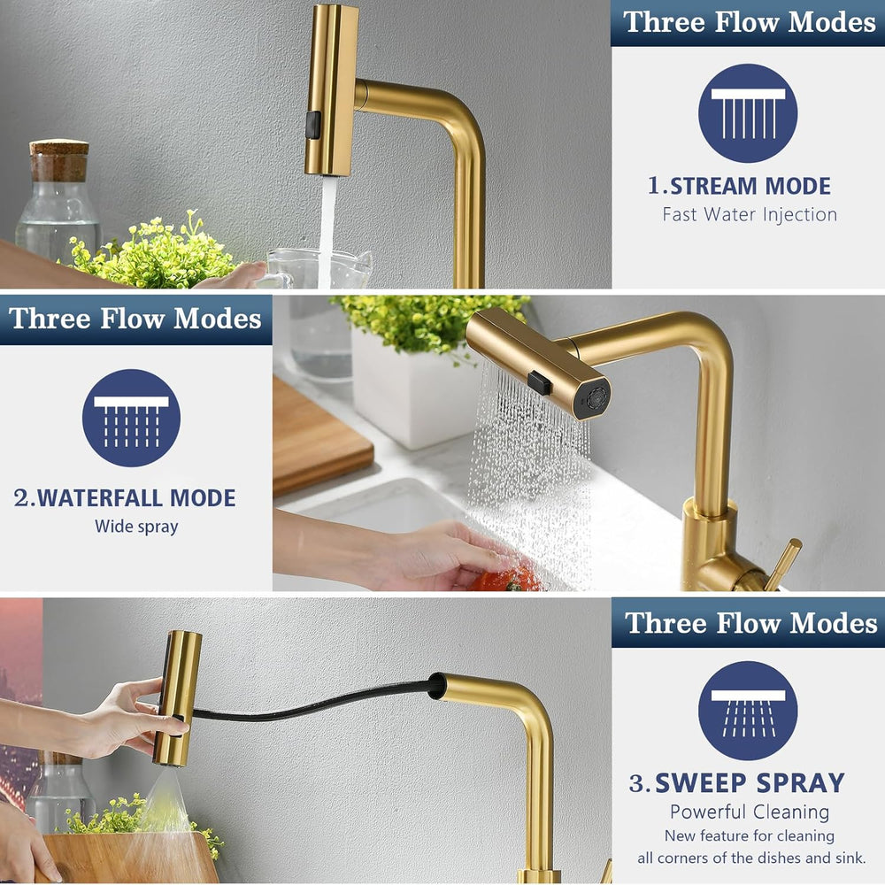 TIMACO 3 Wege Wasserhahn Küche Mit Ausziehbare Brause,Küchenarmatur-360° Drehbar,mit 3 in 1 Wasserha