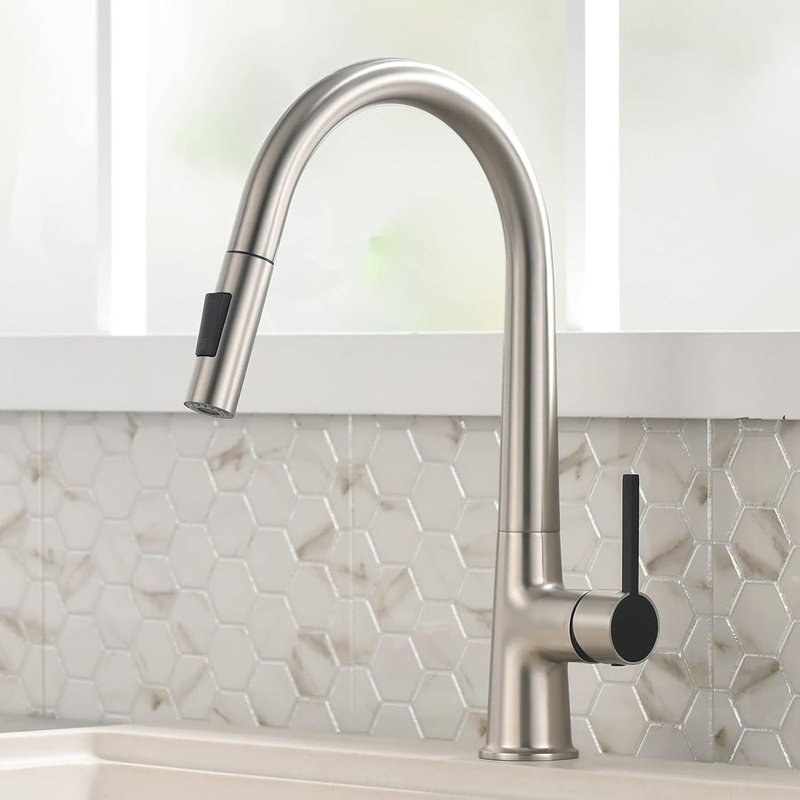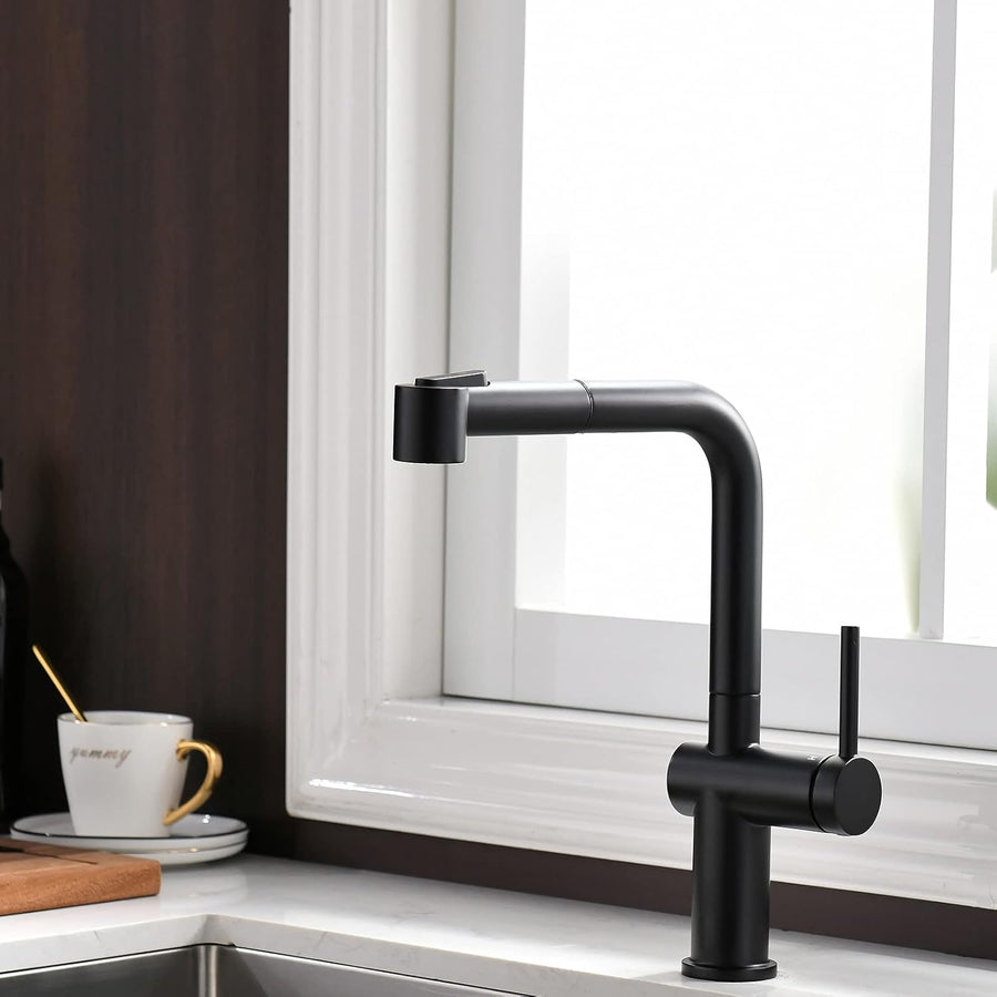 TIMACO Schwarz Küchenarmatur mit Ausziehbare Brause Wasserhahn Küche 360° Schwenkbar Mischbatterien