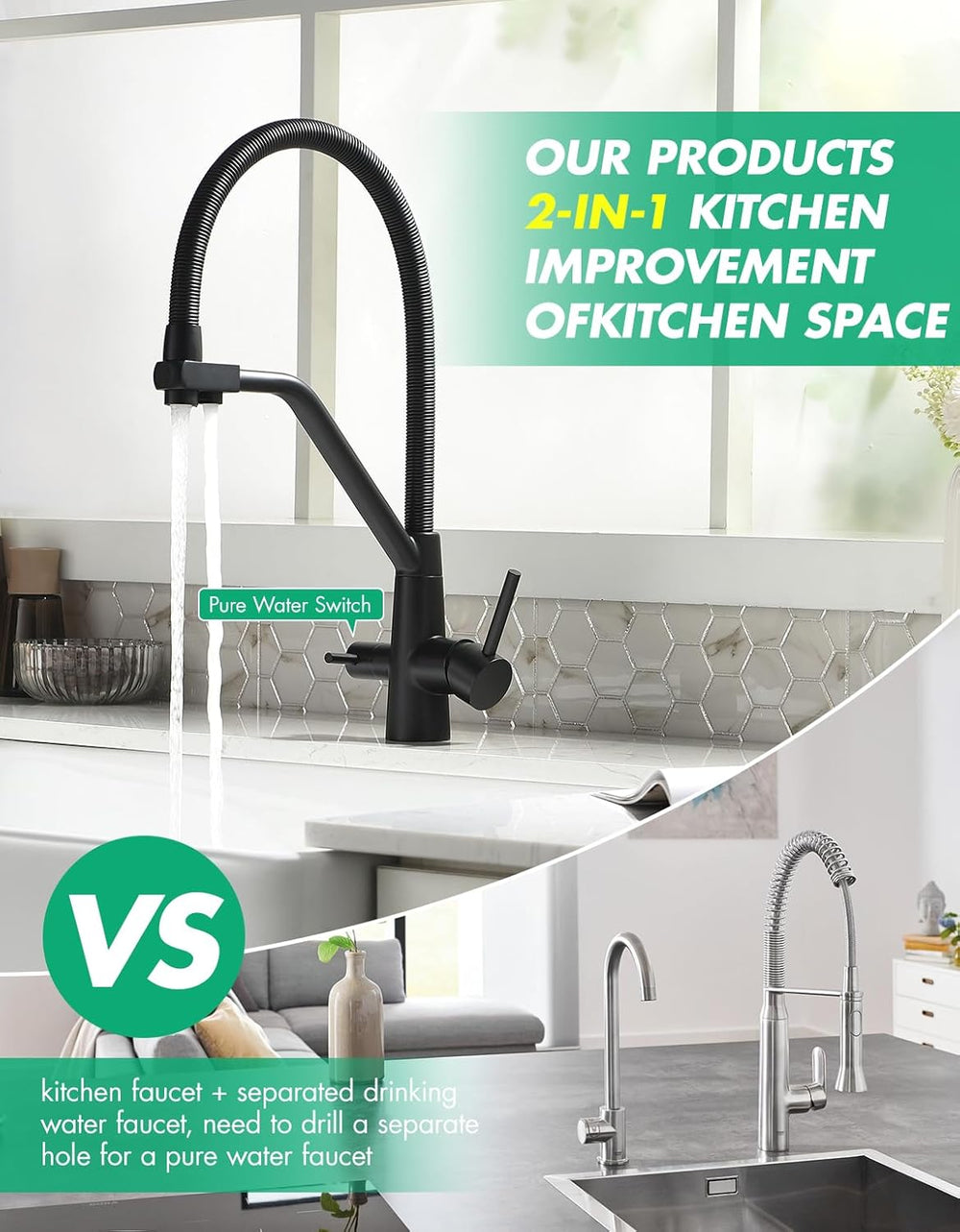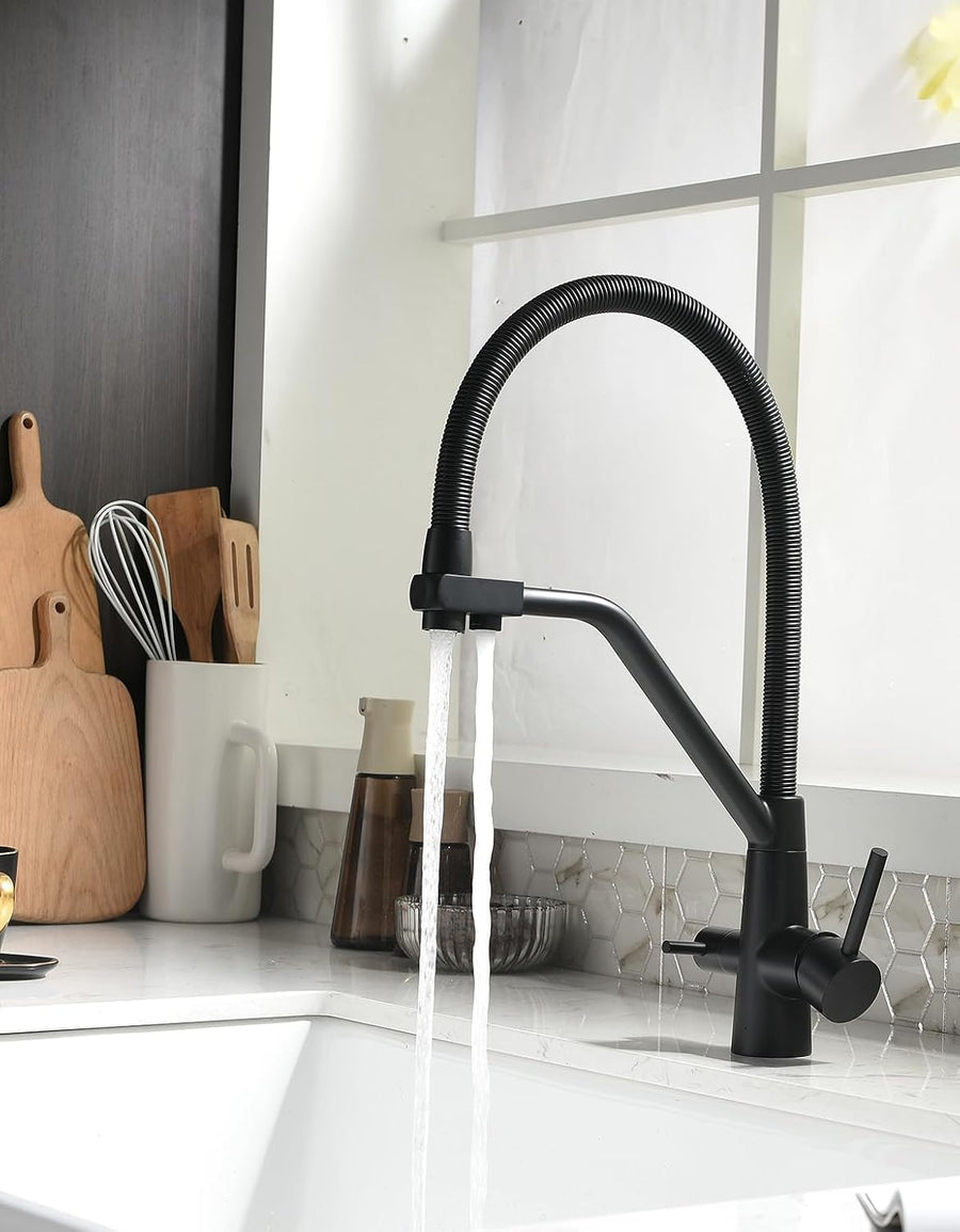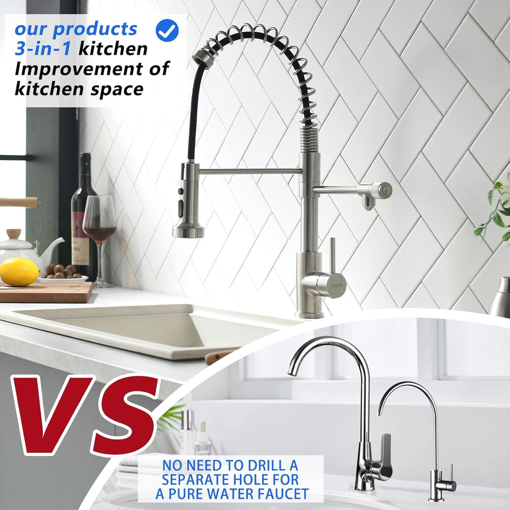 3 Wege Wasserhahn Küche,Küchenarmatur-360° Drehbar,mit 3 in 1 Wasserhahn für Wasserfilter,Spiralfede
