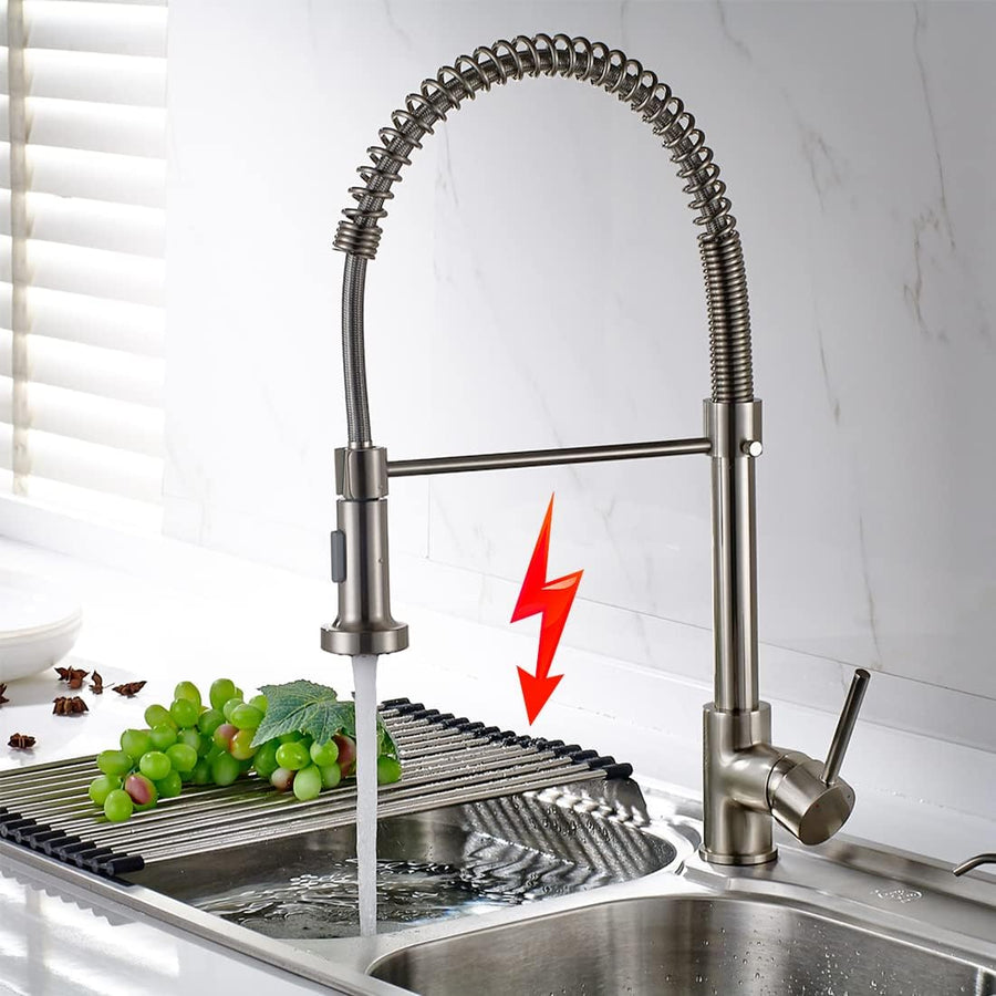 TIMACO Küchenarmatur mit Spiralfeder, Wasserhahn & Brause ausziehbar - 360° schwenkbar - gebürstetes