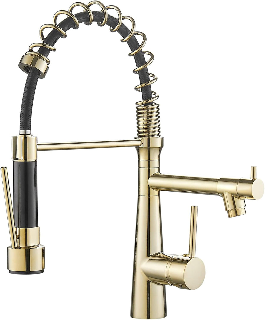 TIMACO Gold Küchenarmatur mit Spiralfeder 360° Schwenkbare Spültischarmaturen mit Zwei Auslauf, Wass