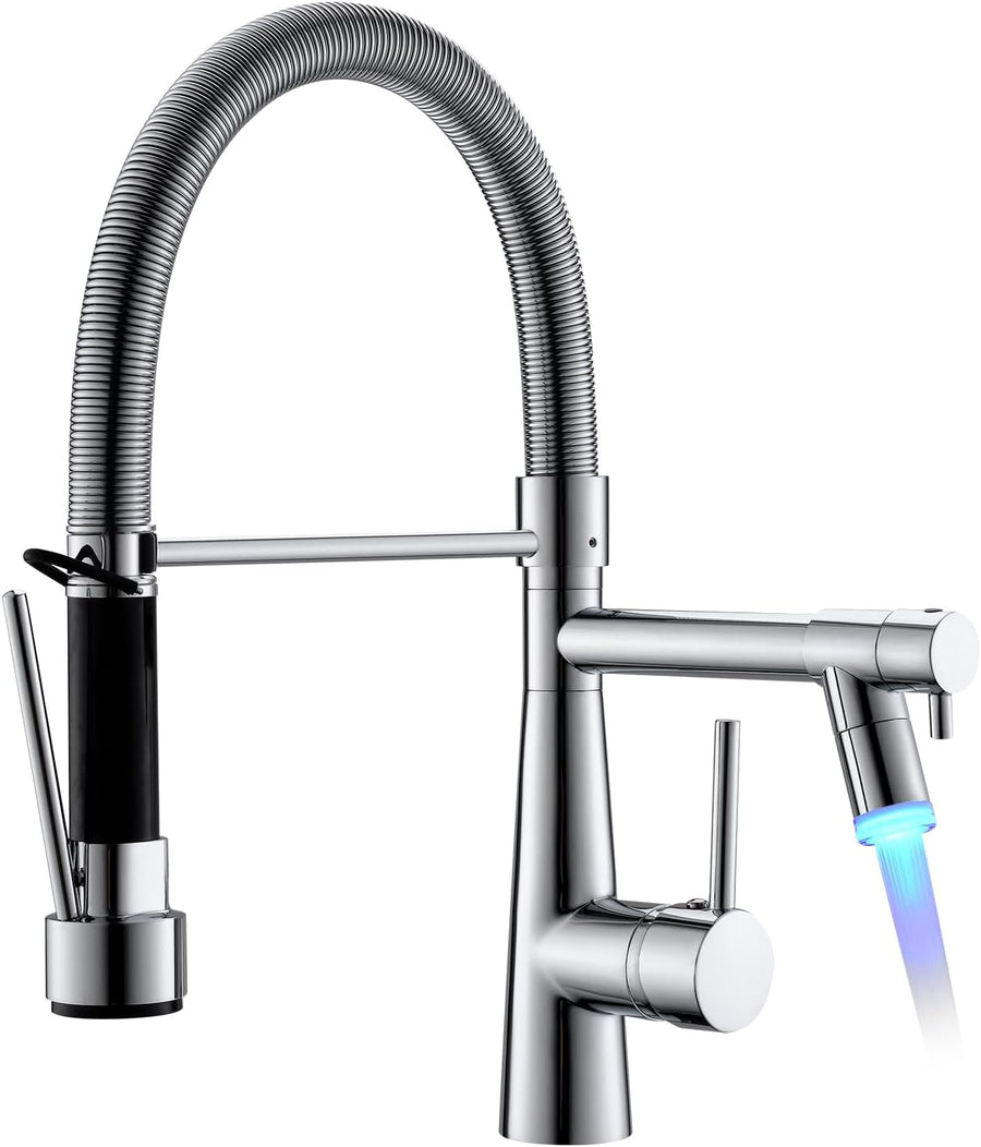 TIMACO LED Küchenarmatur Chrom Wasserhahn Küche mit Spiralfeder, 360°Schwenkbare Spültischarmaturen