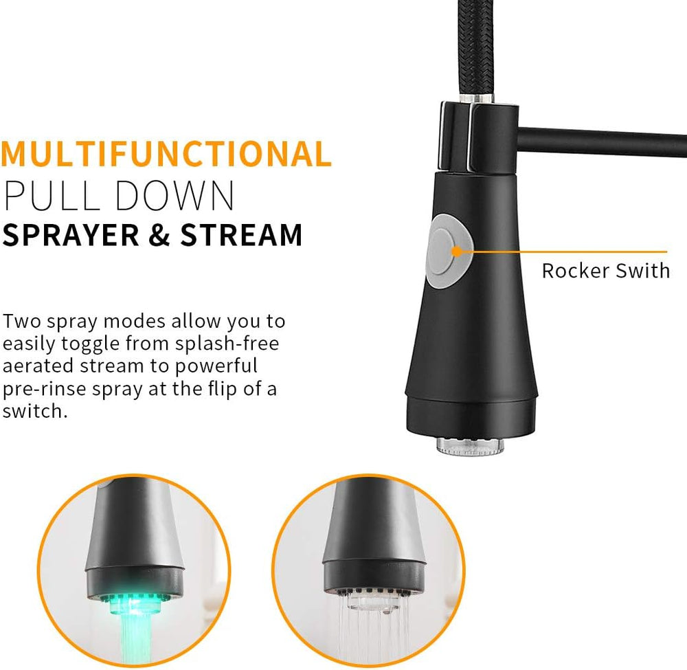 TIMACO LED Schwarz Küchenarmatur mit Spiralfeder,Wasserhahn Küchen 360°Schwenkbare Spültischarmature