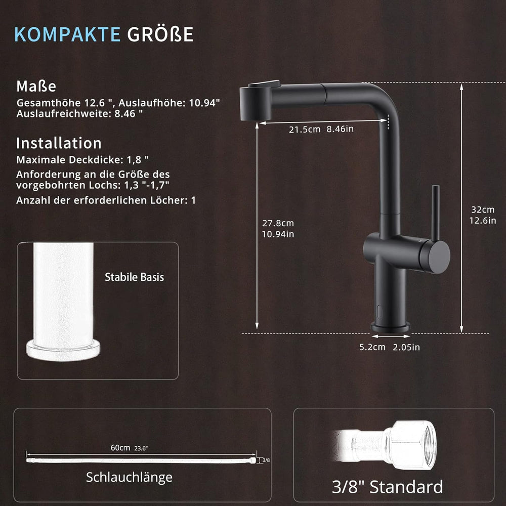 TIMACO Schwarz Küchenarmatur Mit Ausziehbare Brause Wasserhahn Küche 360° Schwenkbar Mischbatterien
