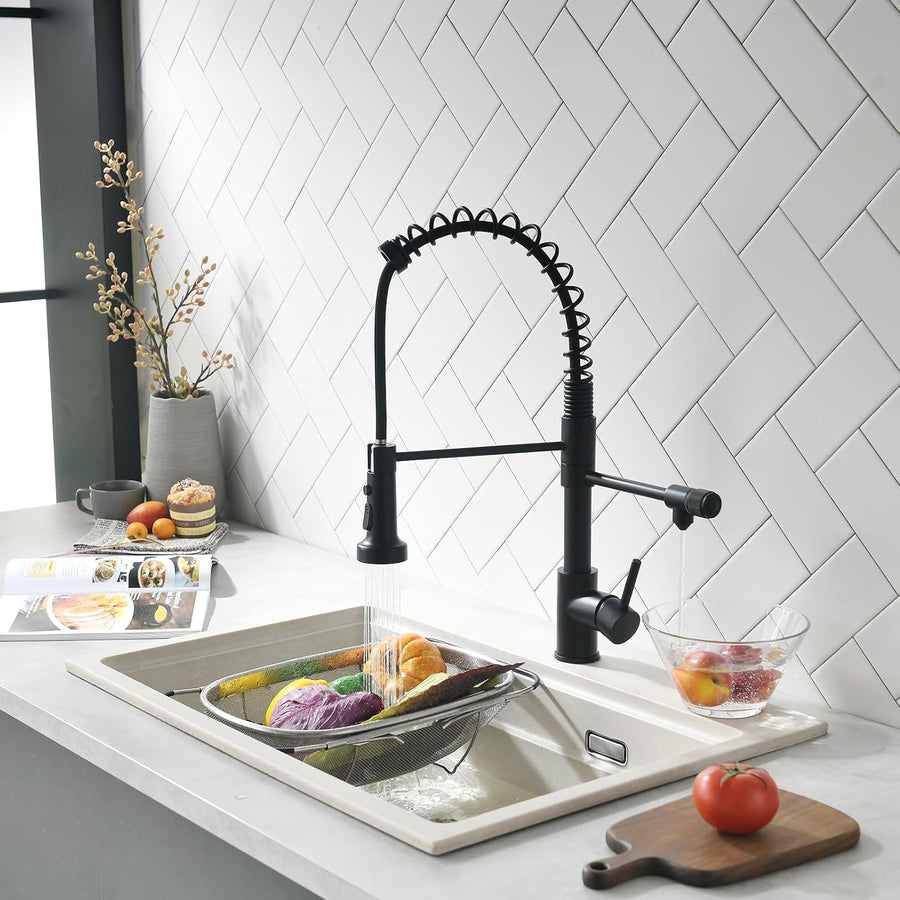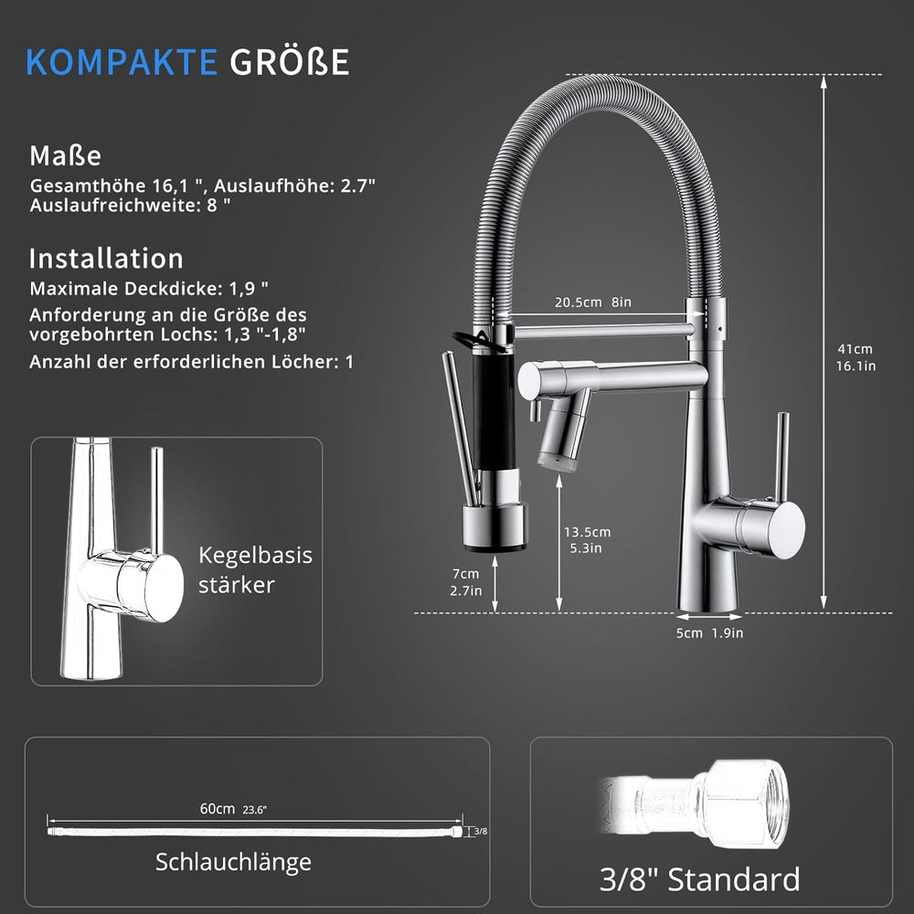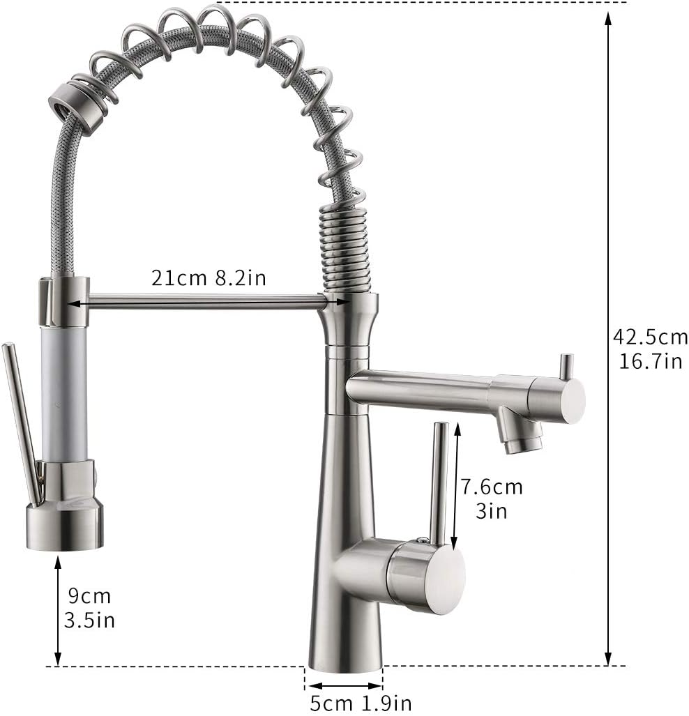 TIMACO Grosser Küchenarmatur mit Spiralfeder,22,36in, 360° Schwenkbare Spültischarmaturen mit Zwei A