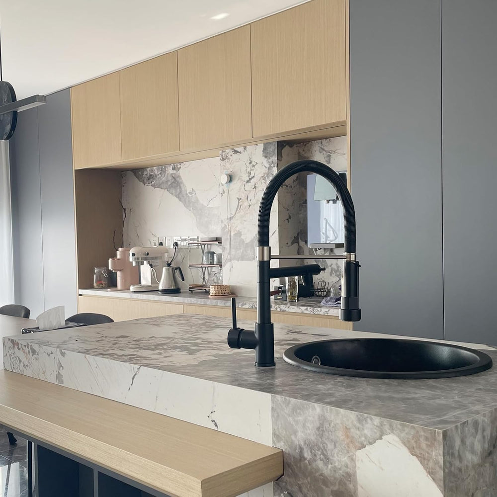 TIMACO Schwarz Wasserhahn Küche 360° Drehbar Küchenarmatur Mischbatterie Gastro Küche Armatur Spiral