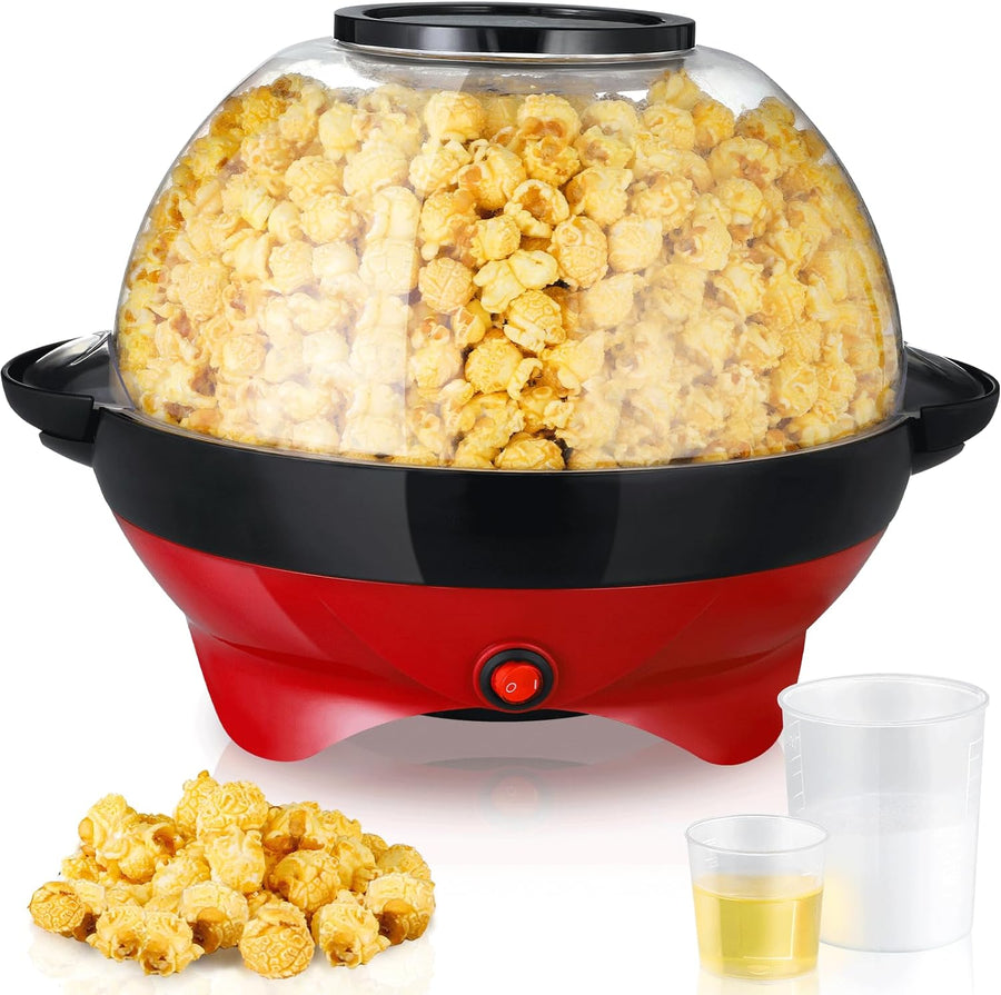 Popcornmaschine 5L, Popcorn Maschine mit Zucker & Öl, 800W Popcorn Maker für Zuhause mit Zwei Messbe