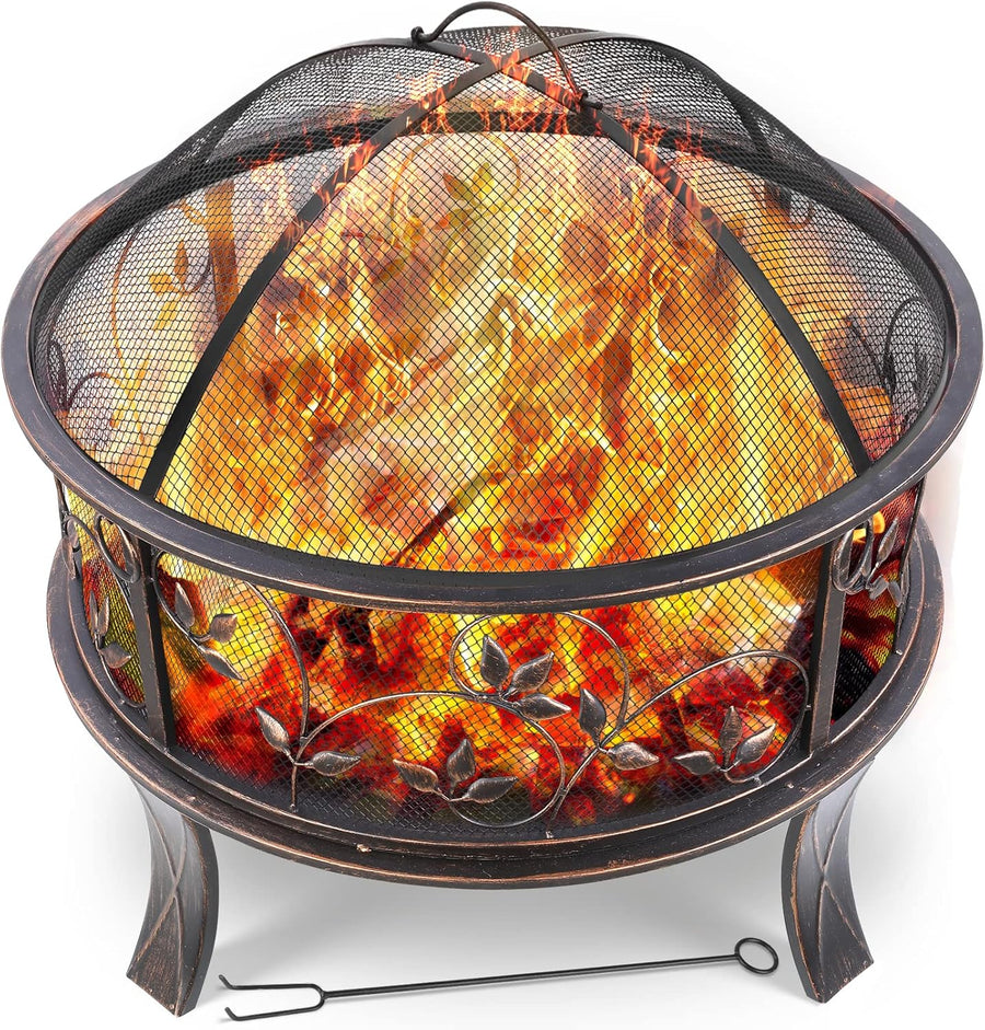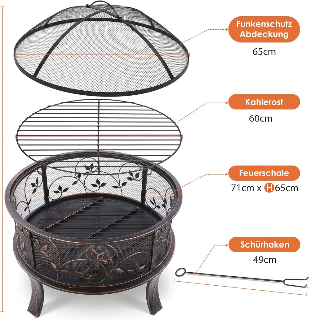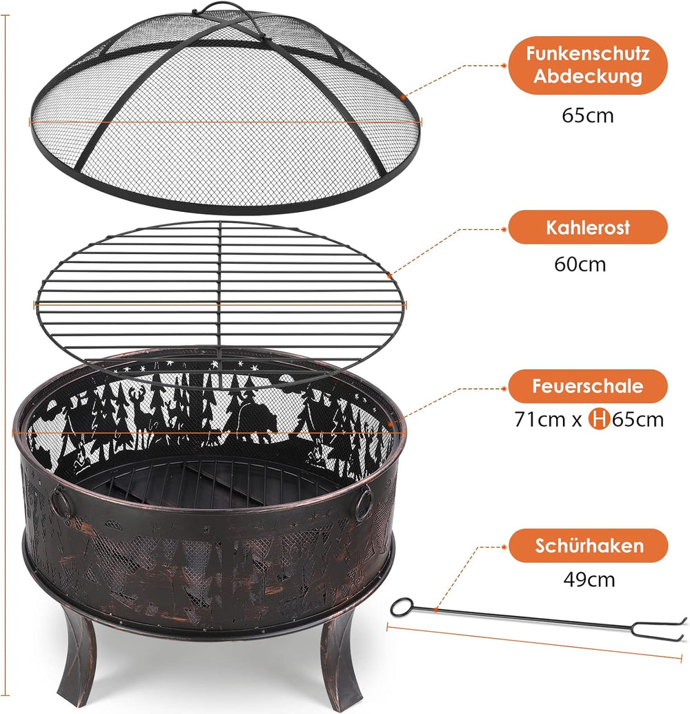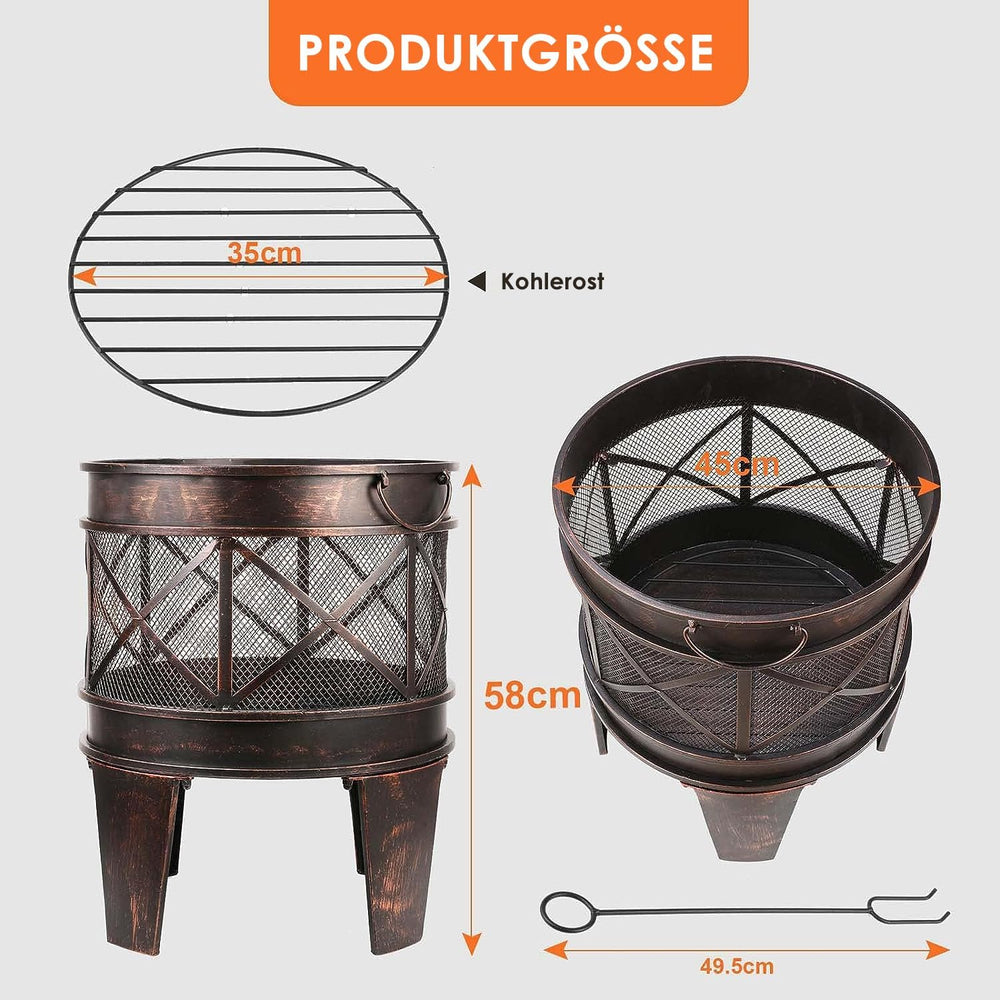 Feuerschale, Feuerschale Garten, Feuerkorb mit Funkenschutz, Feuerstelle Retro-Look, inkl. Poker & K