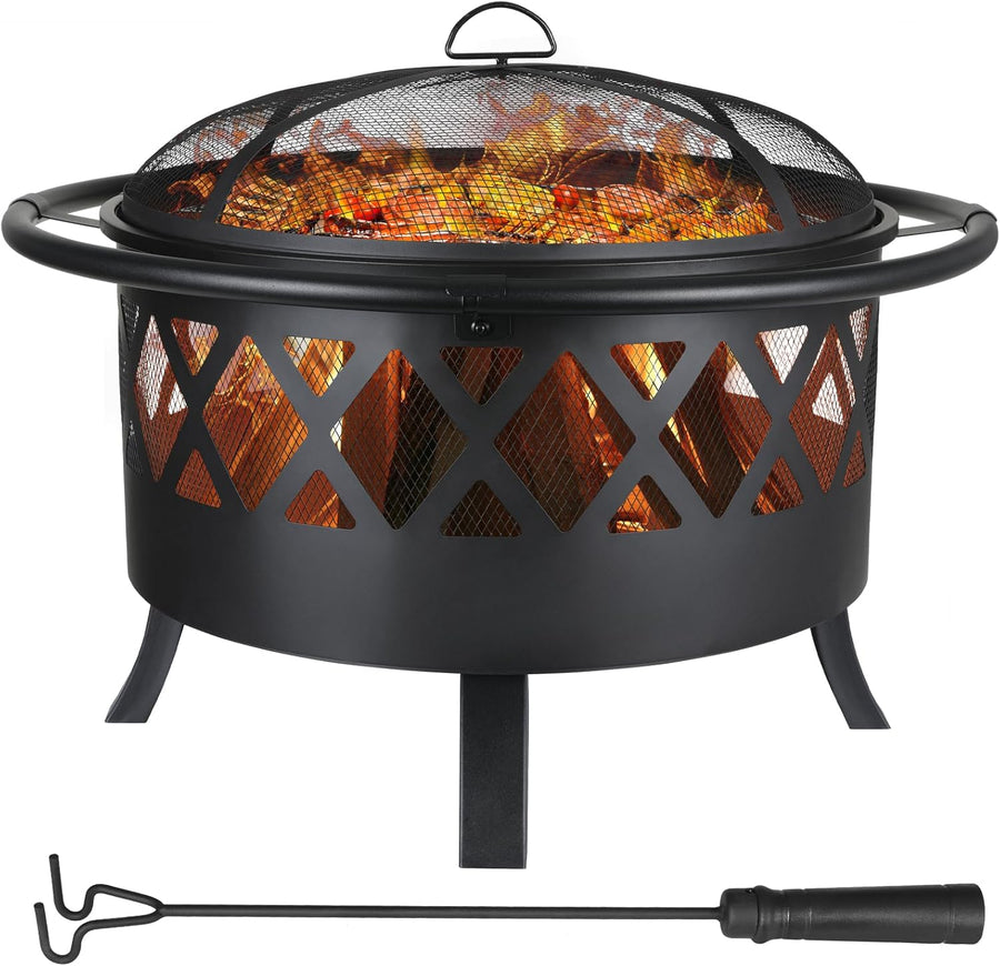 Feuerschale, Feuerschalen für den Garten, Ø 81cm Feuerschale mit funkenschutz und Schürhaken, Feuerk