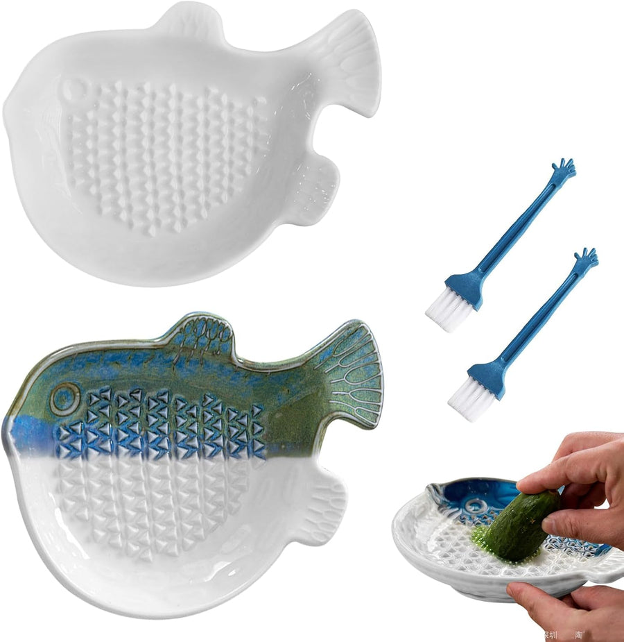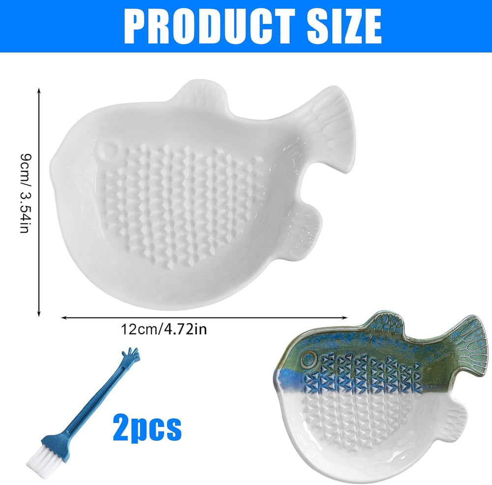 TOATELU 2 Stück Keramikreibe Knoblauchreibe Kugelfischform, Keramikreibe mit Pinsel, Ingwerreibe für