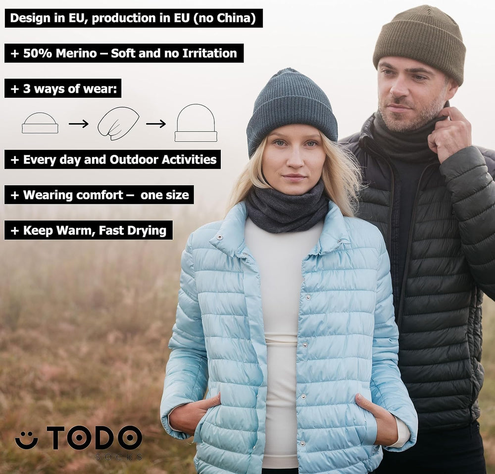 TODO Merino Mütze Herren Beanie Damen, Warm, Weich, Bequem. Wollmütze für kalte Tage, Alltag, Outdoo