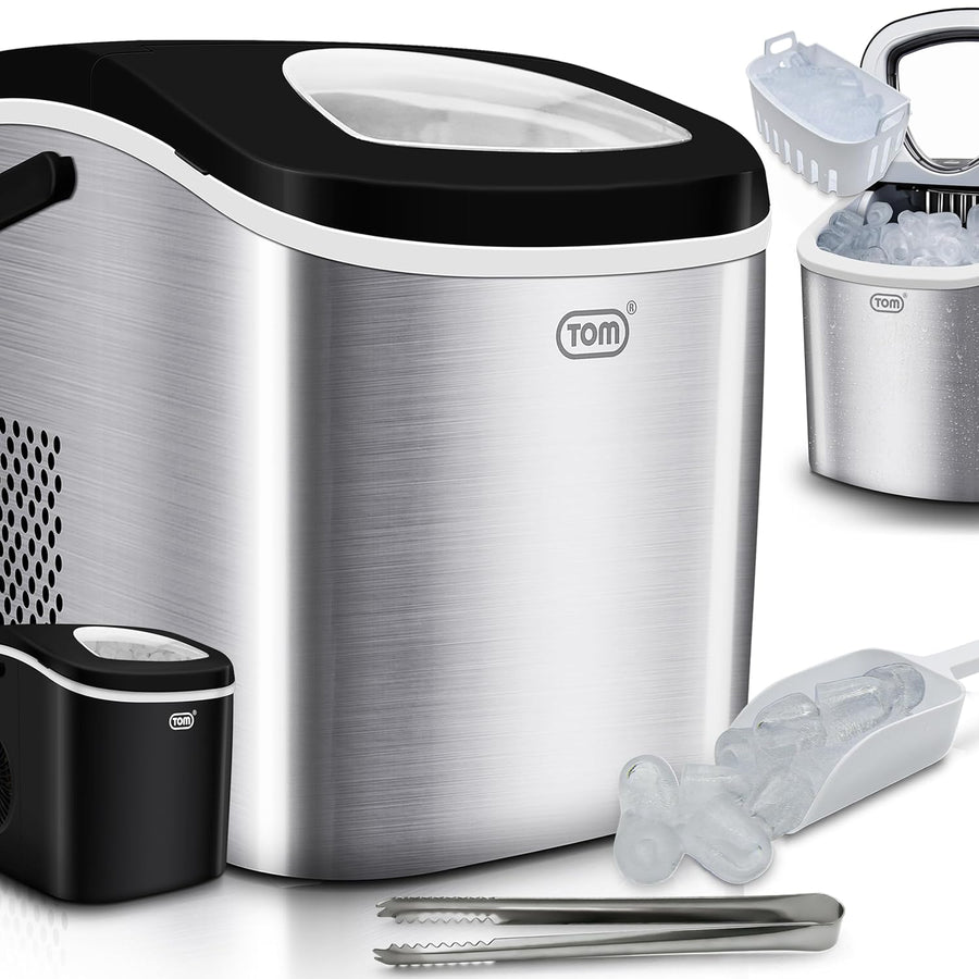 TOM Eiswürfelmaschine – 9 Eiswürfel in 6-8 min – 12 kg/24 h – 2 Würfelgrössen – Ice maker Eiswürfelm