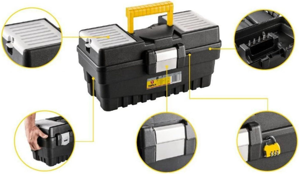TOPEX Profi Werkzeugkasten 15" (37,4 x 18,9 x 19,8 cm) Organizer, Verschliessbare Fächer, Alu-Klamme