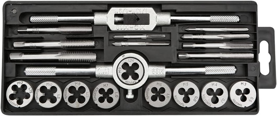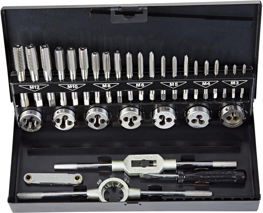Satz Gewindebohrer und Schneideisen bestehend aus: 9 männlichen, 9 Schneideisen, portamaschi, portaf