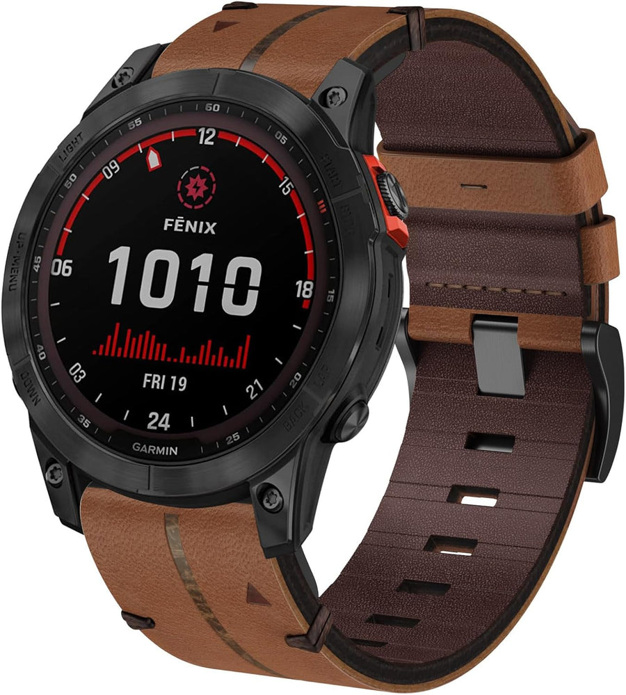 Leder Armband für Garmin Fenix 7X, 26mm Echte Leder Ersatzarmband Quick-Fit Uhrenarmband für Garmin