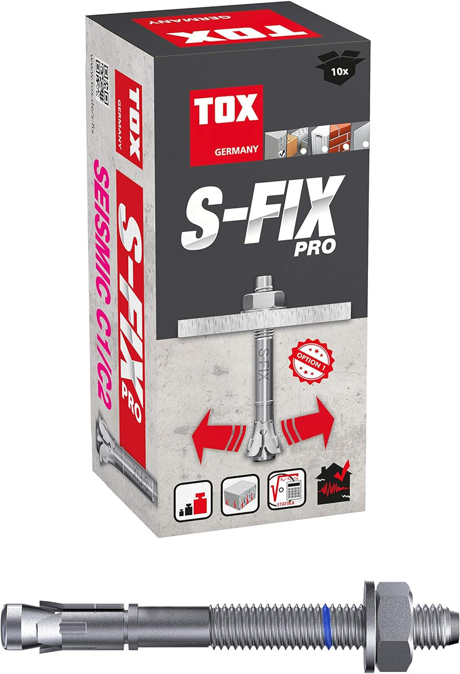 TOX Bolzenanker S-Fix Pro M16 x 175/58 mm 10 Stück 04010237 verzinkt M16 x 175/58 mm Für gerissenen