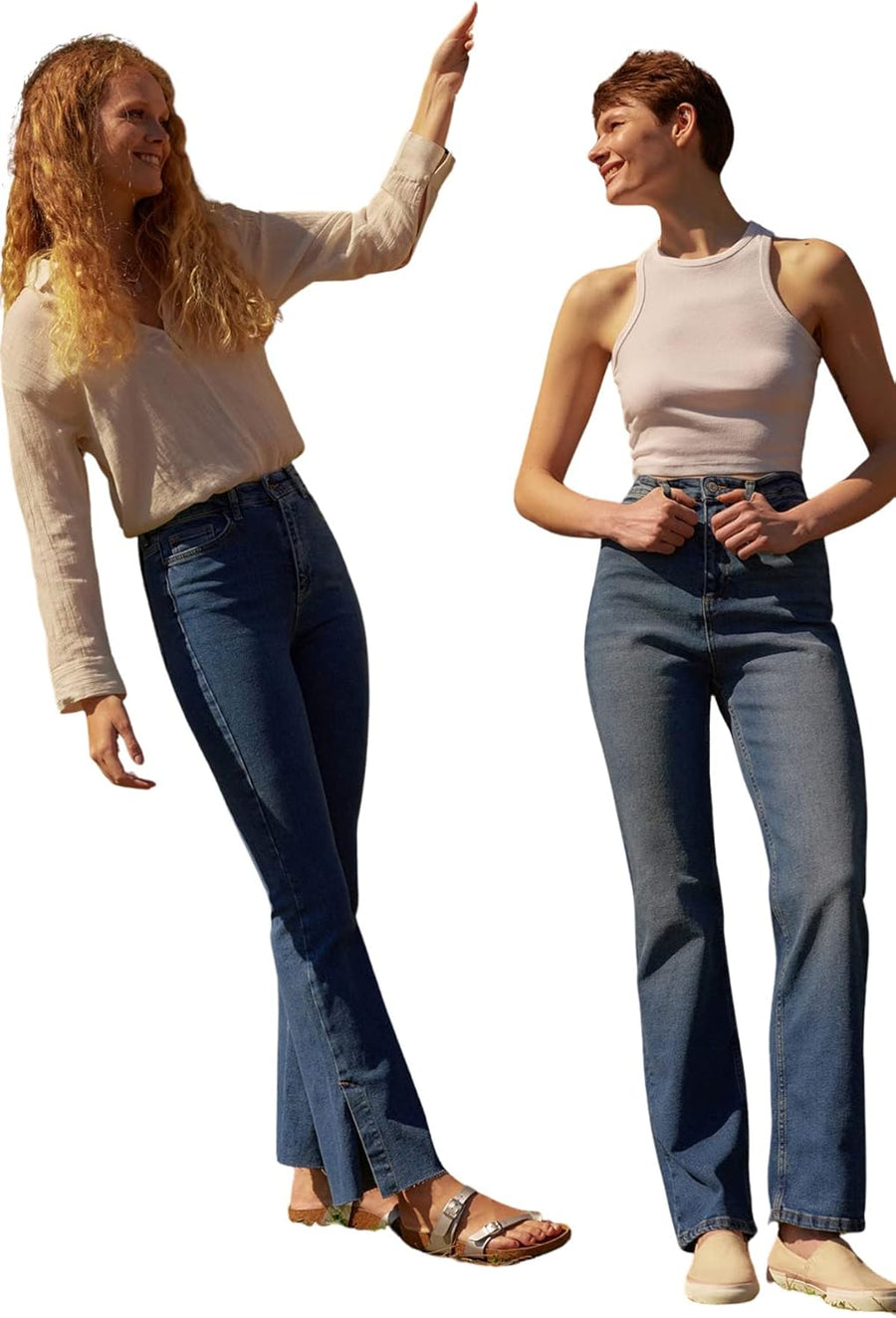 TRENDYOL Damen Herren Hoher Bund Flared Jeans 38 Navy Blue, 38 Navy Blue