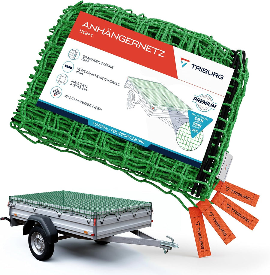 TRIBURG Anhängernetz 1x2 mit Eckmarkierungen - Anhänger Netz mit Spanngummi zur optimalen Ladungssic