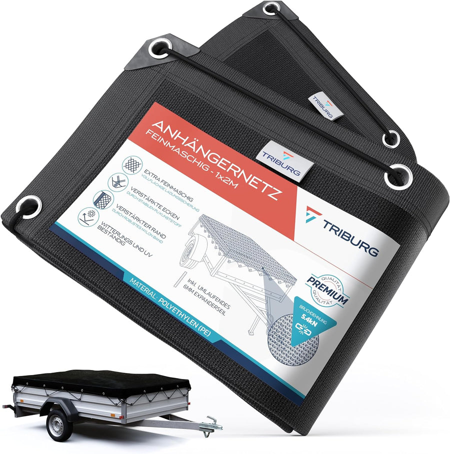TRIBURG® Anhängernetz Dehnbar für Anhänger der Grössen 1x2 m bis 2x3 m - engmaschig mit Gummiseil [s