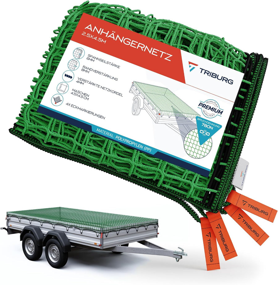 TRIBURG Anhängernetz 2,5x4,5 mit Eckmarkierungen und Randverstärkung - Anhänger Netz mit Spanngummi