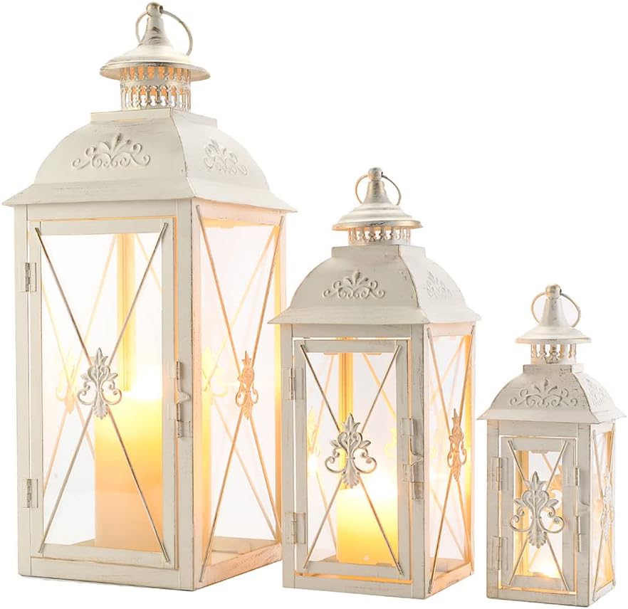 TRIROCKS Set von 3 Dekorativen Hängenden Laternen 49/34/24cm Hoch Vintage Metall Kerzenhalter mit Kl