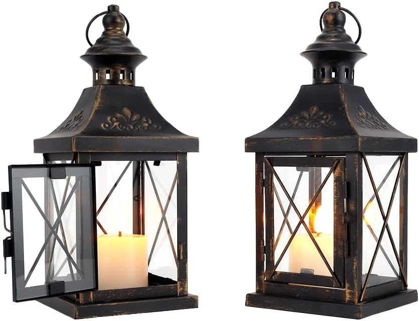 TRIROCKS Set Mit 2 Dekorativen Vintage-Kerzenlaternen 30,5 cm Und 41,5 cm Hohe Metall-Kerzenhalter H