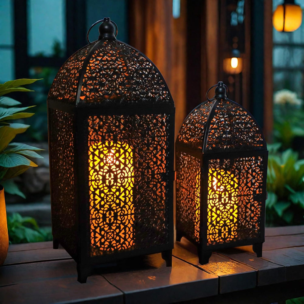 TRIROCKS 2er-Set Dekorative Ramadan-Kerzenlaterne aus Metall Orientalischer Kerzenhalter Arabische H