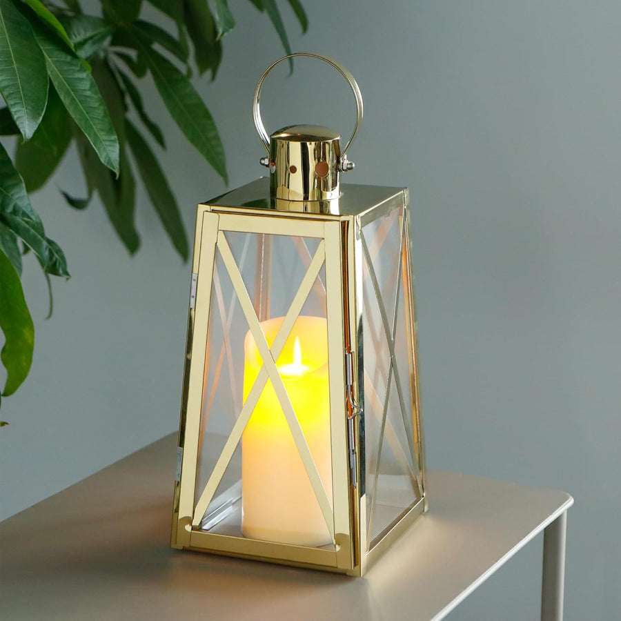 TRIROCKS Dekorative Edelstahl Laterne 30 cm Hoch Metall Kerzenhalter Mit Klaren Glasscheiben Für Hei