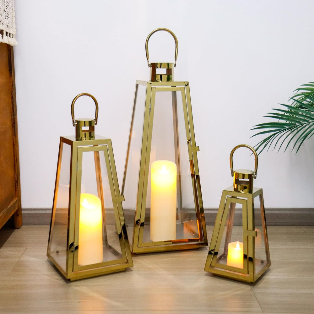 TRIROCKS 3er-Set Kerzenlaterne aus Edelstahl 48 cm & 38 cm & 30 cm hoch Kerzenhalter aus Metall mit