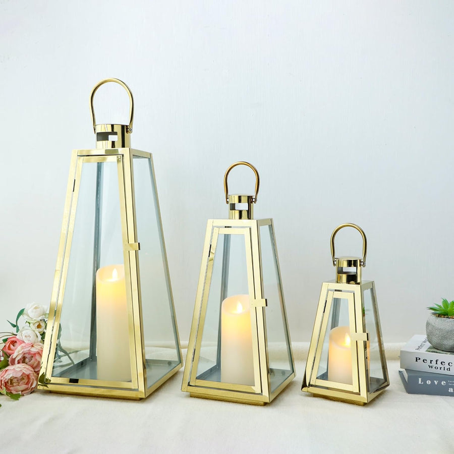TRIROCKS Set aus 3 Edelstahl Kerzenlaterne 48cm Hoher Metallkerzenhalter mit klaren Glasscheiben Per