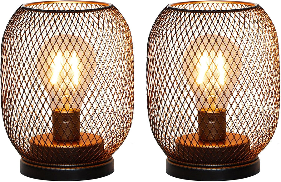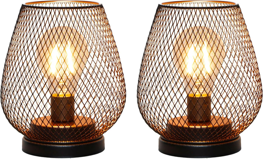 TRIROCKS Set Von 2 Batteriebetriebene Tischlampe Metallkäfig Kabellose Laterne Mit LED Birne Oval Vi