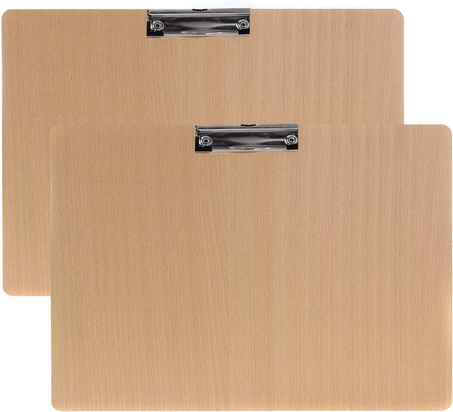 2er Klemmbrett A3 Quer aus Hartholz extra dick 4mm, mit Aufhängeose, Gummierter Metalklemme, Skizzen