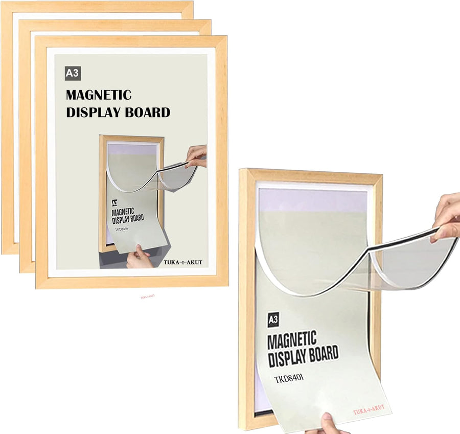 TUKA A3 Wechselrahmen Holz Natur mit Magnetverschluss, Acryl Info-Rahmen Plakatrahmen Posterrahmen B