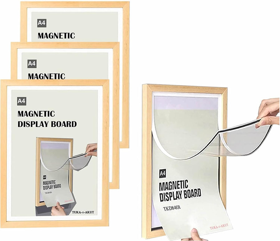 TUKA [4er] A4 Wechselrahmen Holz Natur mit Magnetverschluss, Acryl Info-Rahmen Plakatrahmen Posterra