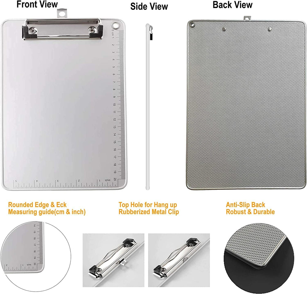 6er A5 Metall Klemmbrett, Anti-Rutsche Rückseite, Gummierter Metalklemme, Hartfaser Schreibbrett mit