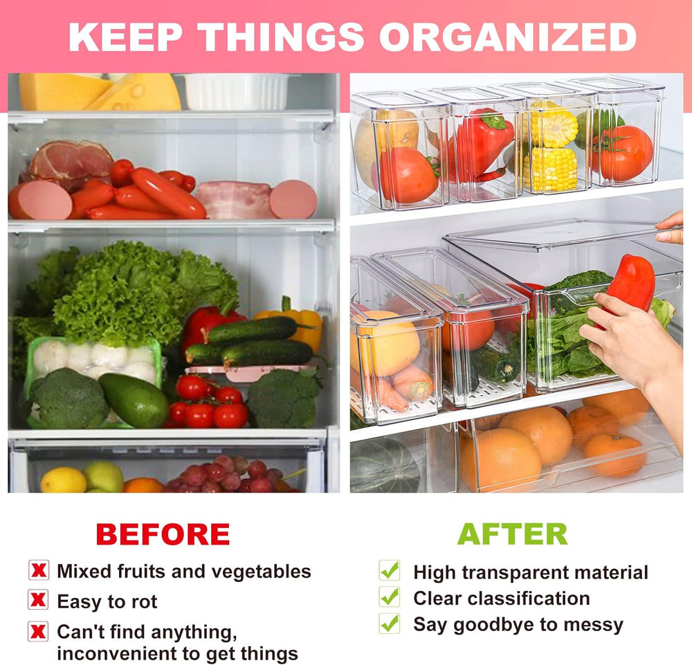TWBEST Kühlschrank Organizer 8 Set,Kühlschrank-Organizer Mit Griff für Küche-Mit Deckel,Behälter für