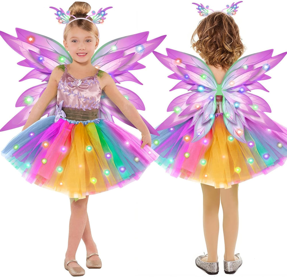 Tacobear Leuchtend Feenflügel Feenkostüm Mädchen mit LED Tutu Tüllrock Haarreif Zauberstab Elfenohre