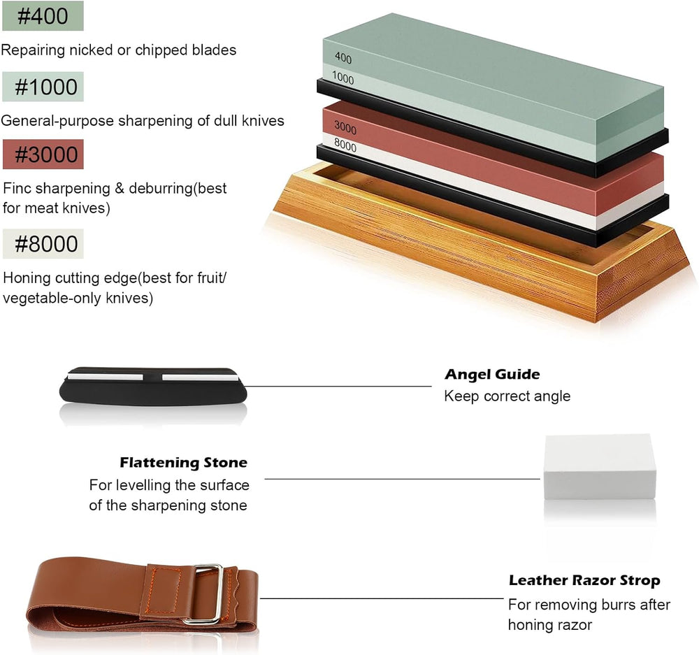 Abziehstein Schleifstein Messer Set 8-in-1, Doppelseitig Wetzstein für Messer 400/1000 & 3000/8000 G