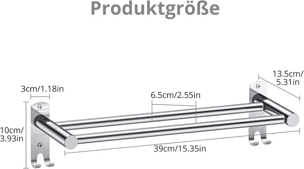 TANiCE 40-70cm Handtuchstange doppelt Bad einstellbar Edelstahl Selbstklebend Handtuchstange wandmon