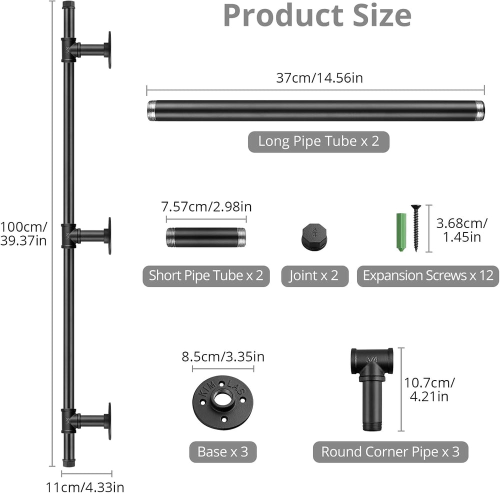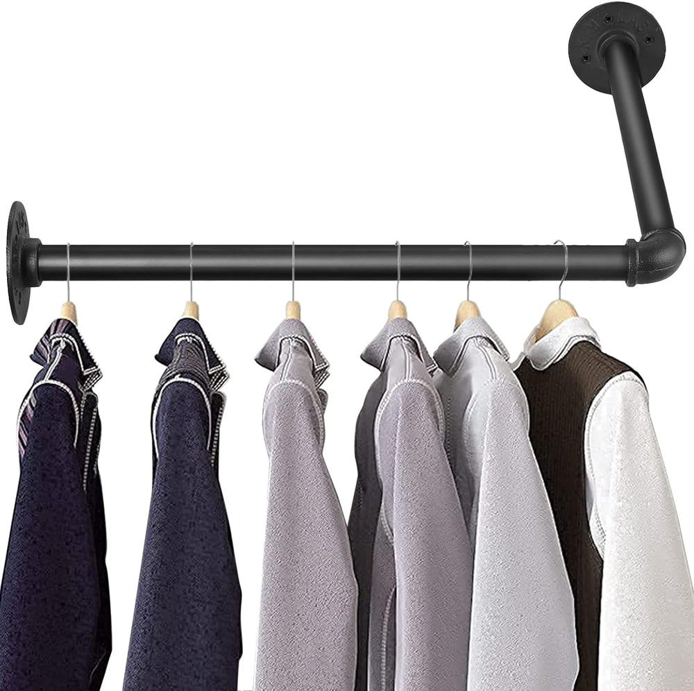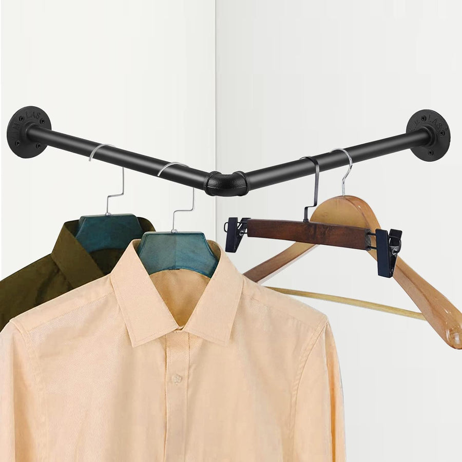 TANiCE 46cm Rechter Winkel Industrierohr Kleiderstangen Kleiderständer Wand Kleideraufbewahrung zur