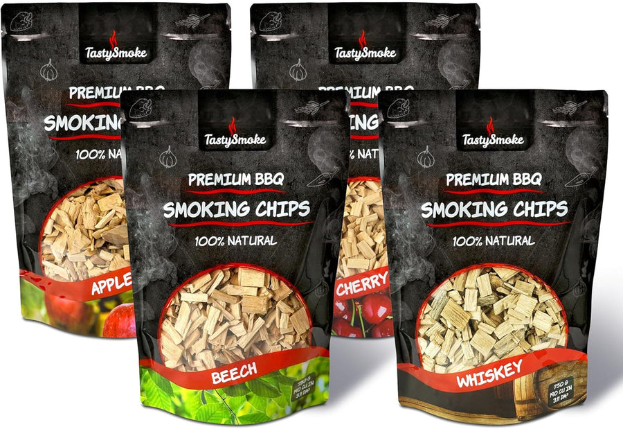 Hochwertige Räucherchips 4er Set – Naturbelassene Holzchips aus Apfel, Buche, Kirsche & Eiche – Perf