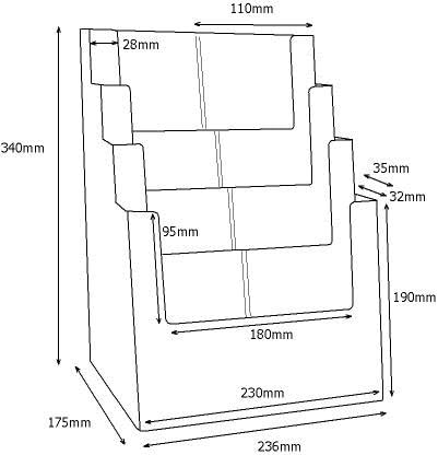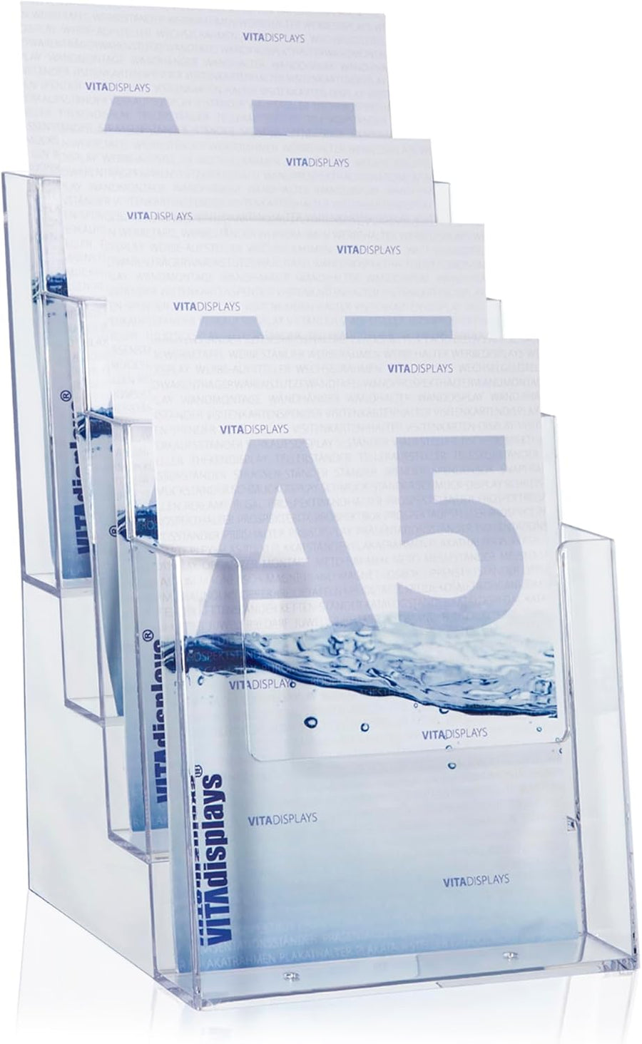 Taymar® DIN A5 Prospektständer mit 4 Etagen, Transparent 4 Fächer Single Pack Single, 4 Fächer
