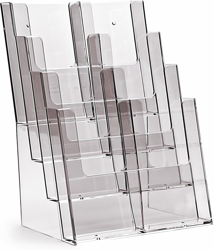 Taymar 4C230 Tisch-Prospektständer, DIN Lang (DL) oder DIN A4 , 4 Etagen, transparent, 2 Stück 8 Fäc