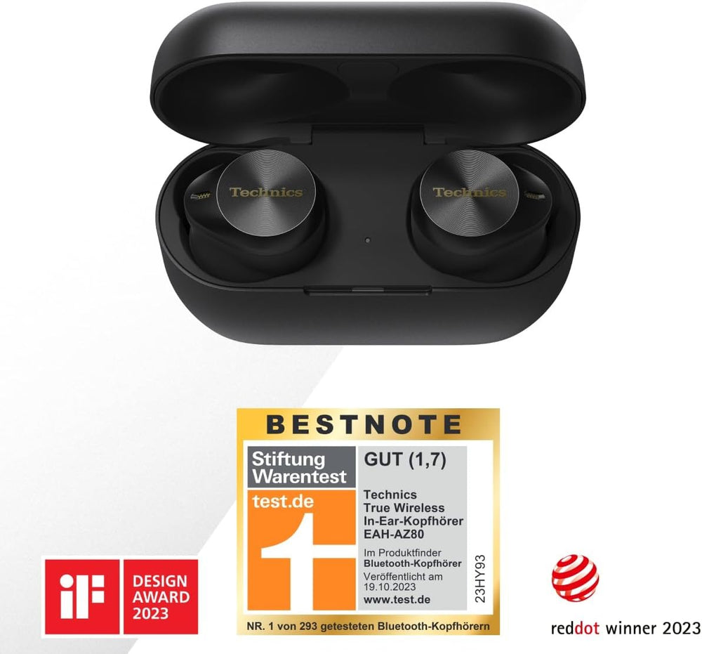 Technics EAH-AZ80E-K kabellose Ohrhörer mit Noise Cancelling, Multipoint Bluetooth 3 Geräte, bequeme