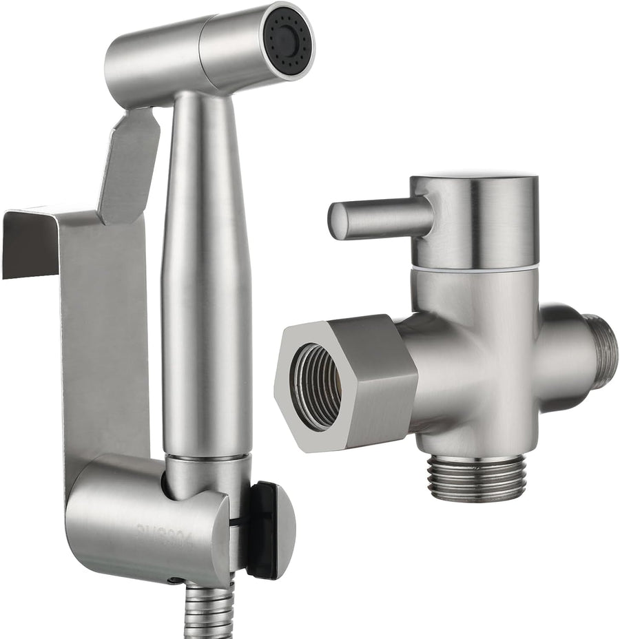Tecmolog Bidet Handbrause Edelstahl Bidet Sprayer Set mit 3-Wege Umschaltventil 3/8"-12/17 und Dusch