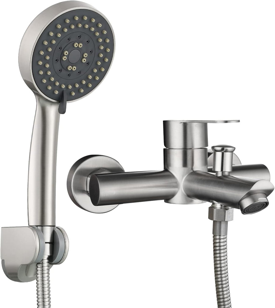 Tecmolog Aufputz Einhebel Wannenmischer-Dusche Set Edelstahl Badewannenarmatur mit Handbrause und Du