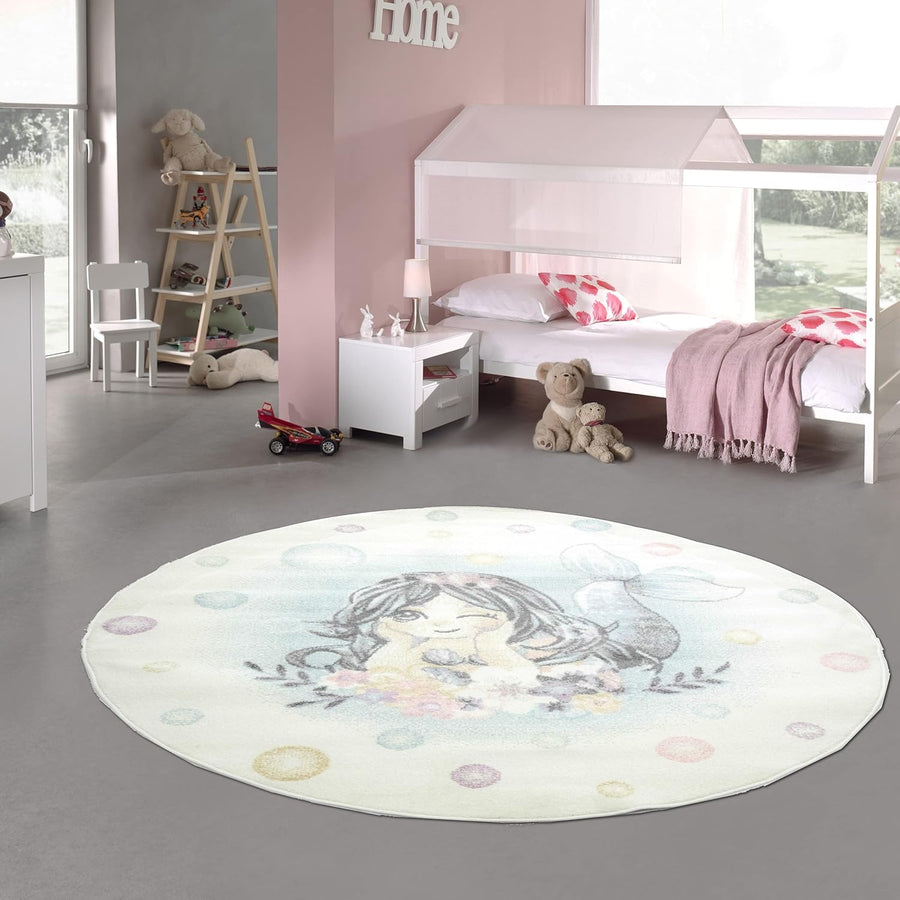 Teppich-Traum kreisförmiger Kinderzimmer Spielteppich • strapazierfähig • Meerjungfrau Blumen Seifen