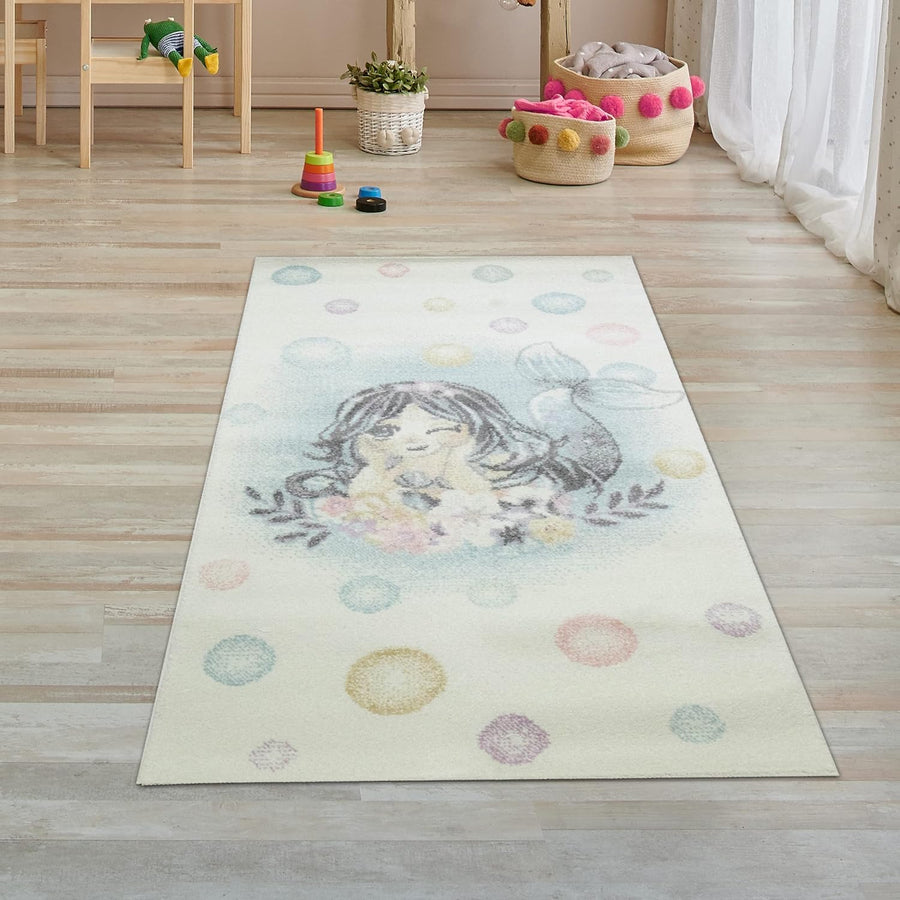 Teppich-Traum Kinderzimmer Spielteppich Vorleger • pflegeleicht • Meerjungfrau Blumen Seifenblasen C